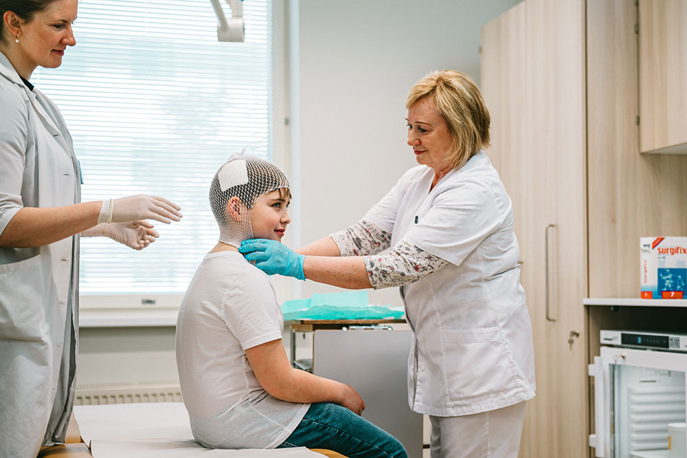 Ema aitab lapsel operatsiooniks valmistuda.